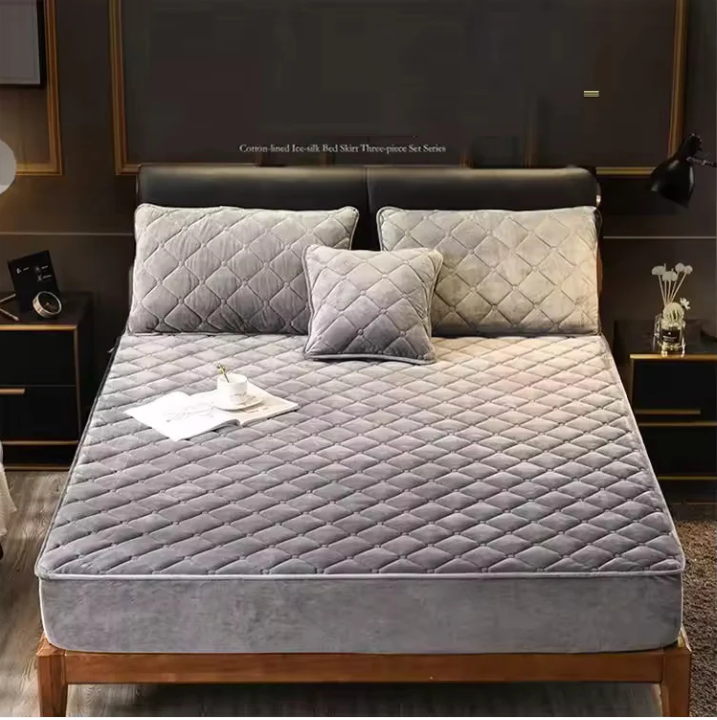 Thick Quilted 100% Waterproof Mattress Protector For Double Bed - Light Grey