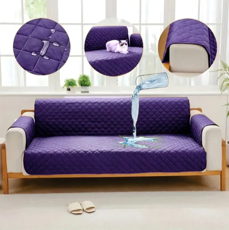 WATERPROOF COTTON QUILTED SOFA COVER - SOFA RUNNERS (Purple)